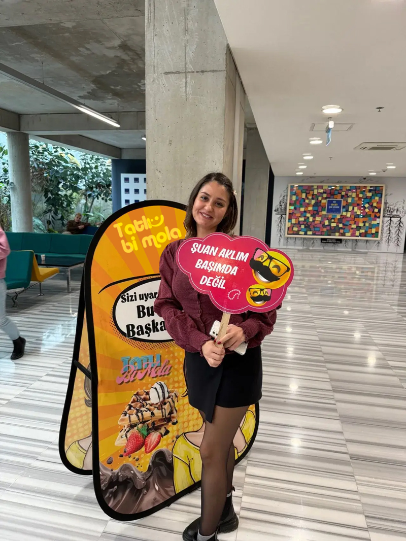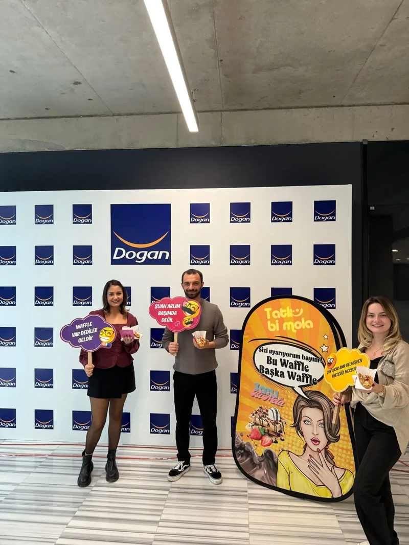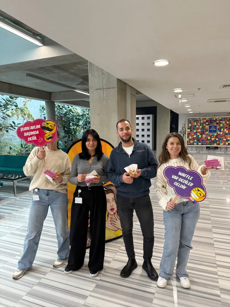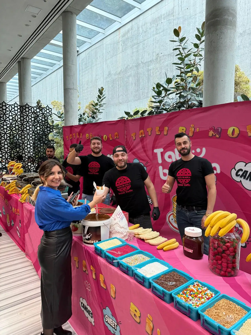 Waffle kokusunu ortama yaydık, mutluluk tam o nokta da hızla ekibi sarmaya başladı ✨🤩 Üzerineakışkan çikolata ve taptaze meyvelerle Waffle ın zengin süslemesiyle ortaya çıka Tatlı Bi Mola tam olarak böyle; neşe dolu geçti. Ekip neşesine neşe enerjisine enerji kattı. Bizler de onlarla mutlu olduk. Mutluluk büyüdü büyüdü…